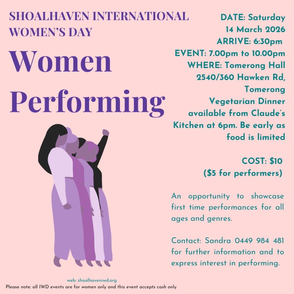Women Speaking – SAVE THE DATE 7th March 2026 Berry School of Arts. Further details will be shared in the not too distant future